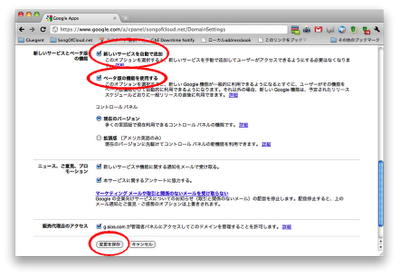 上部のメニューから「ドメインの設定」をクリック、設定画面を表示します。 画面に表示される各種設定から以下の2つにチェックを入れて保存します。